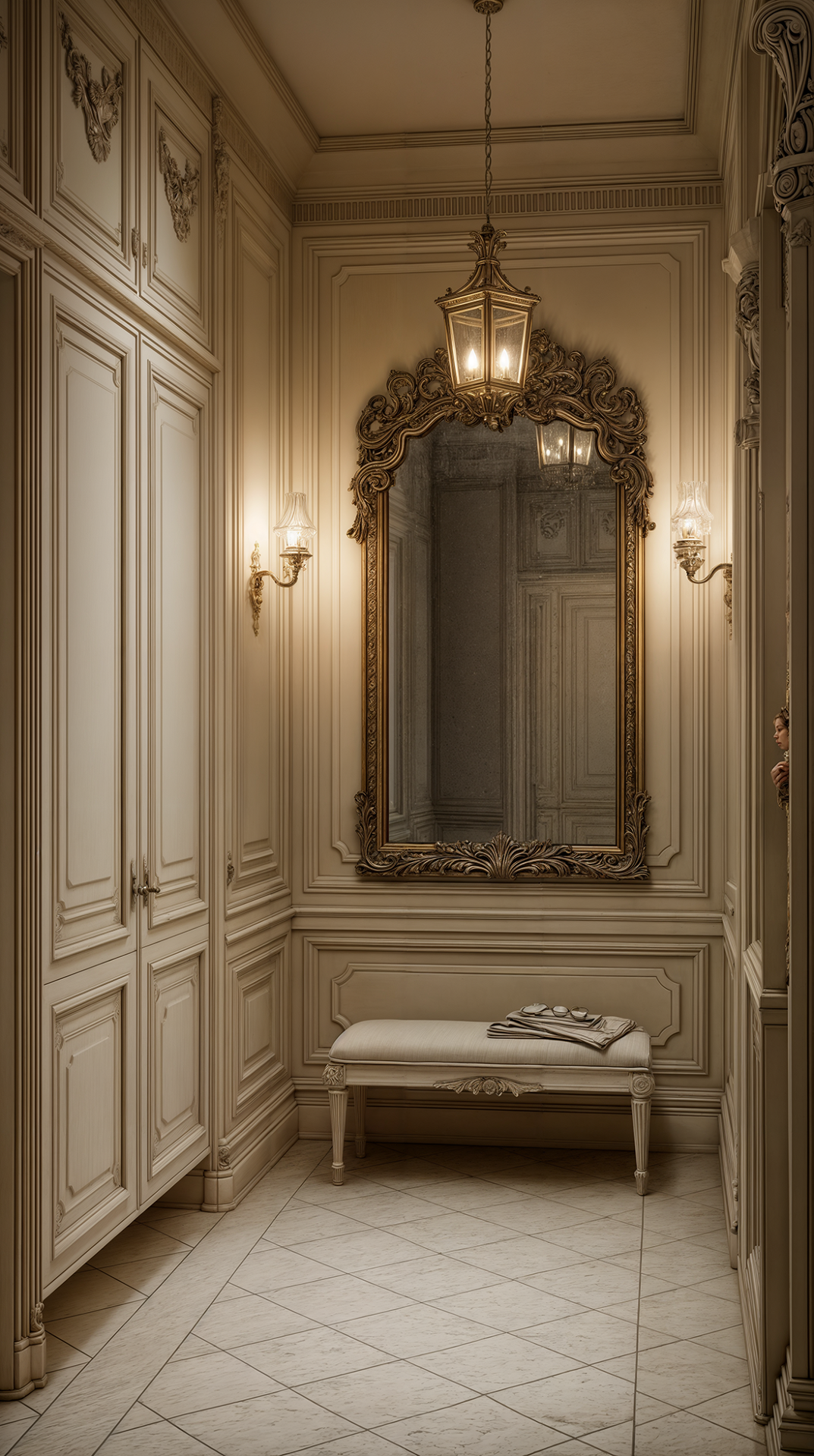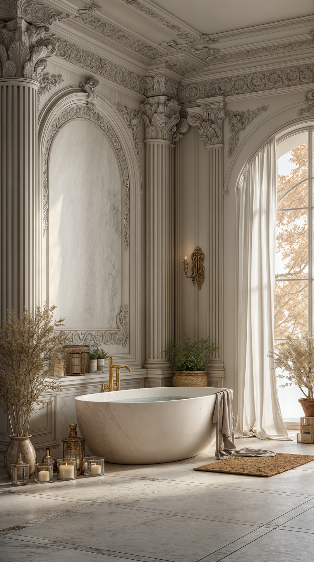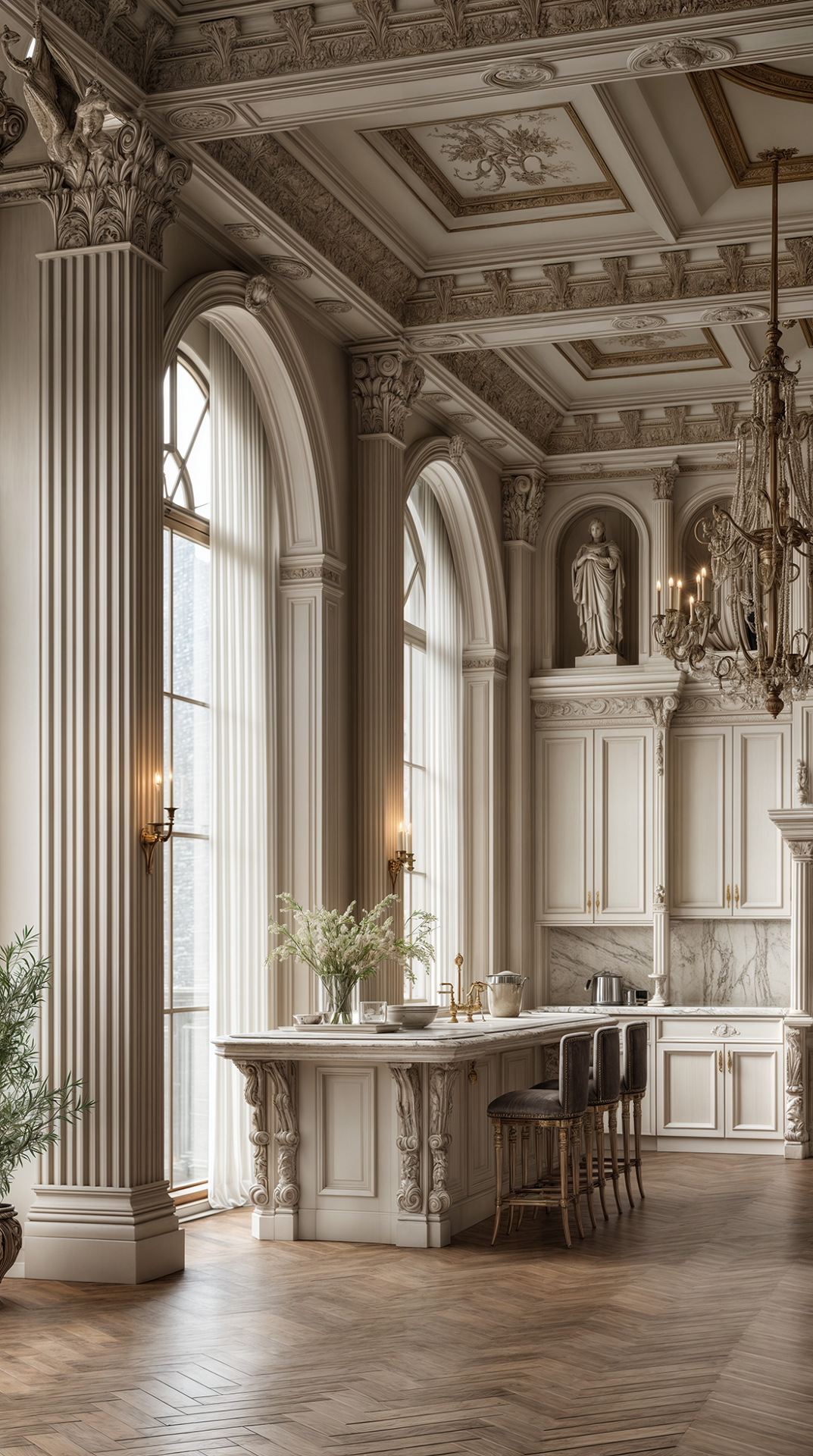 КОМПОЗИЦИЯ ПРОСТРАНСТВА: античный стиль предполагает большие пространства и высокие потолки - именно тогда его элементы (скульптуры, пилястры, колонны и обилие лепного декора) смотрятся наиболее эффектно и оправданно. Тут принцип «золотого сечения» в построении композиции играет главенствующую роль - гармония визуального восприятия пространства важна, как никогда.
