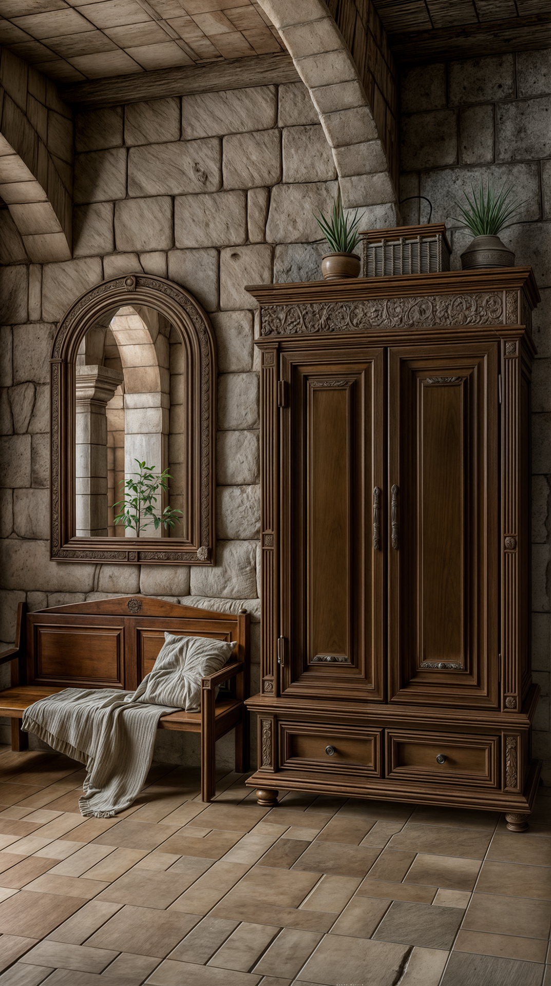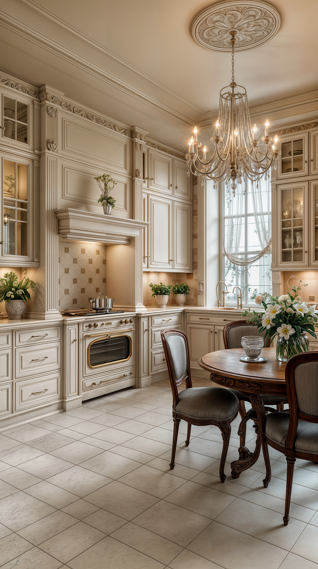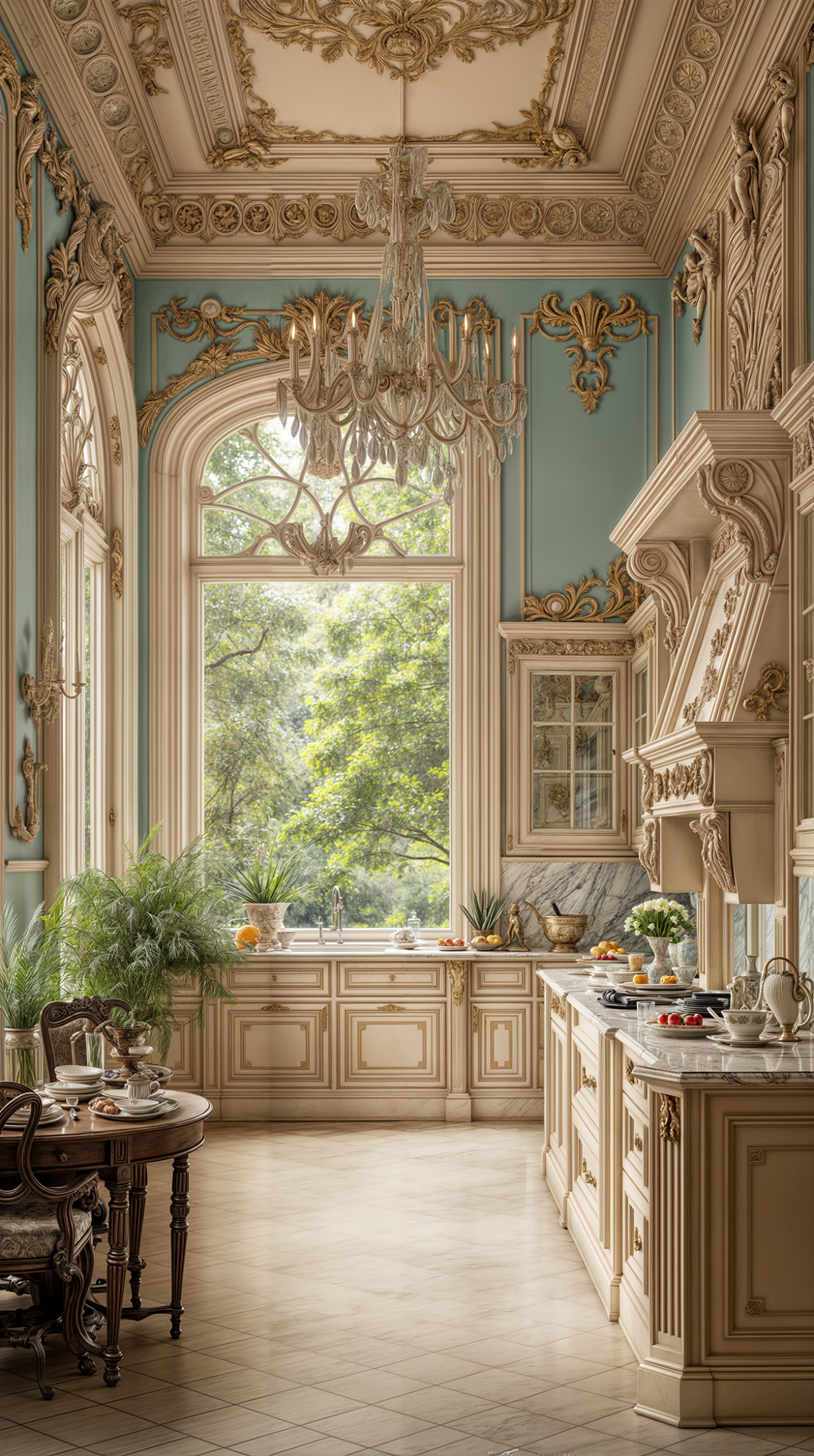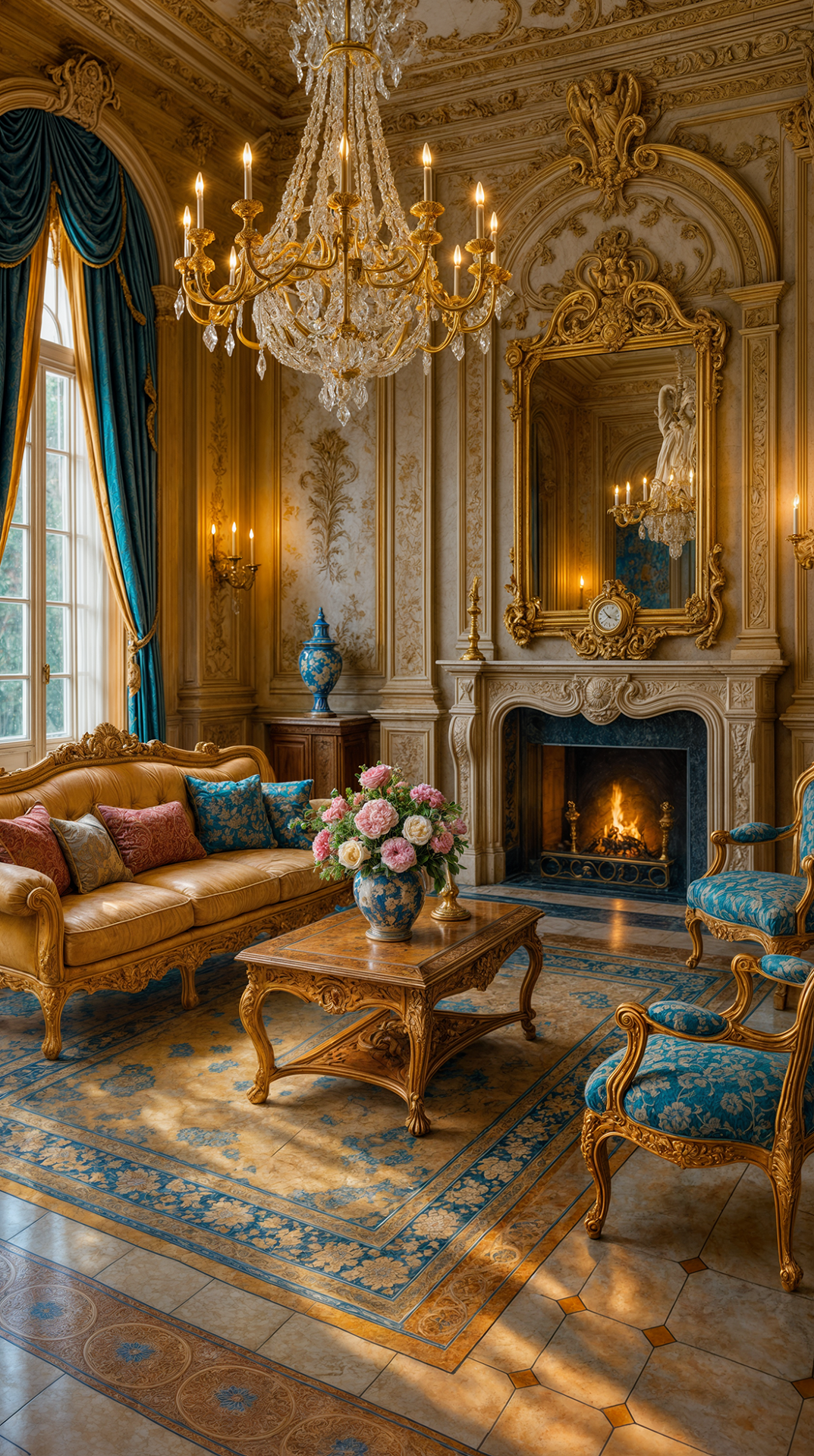 ДЕКОР: подчеркивает образованность хозяина — в декоре часто встречаются бюсты, скульптуры, глобусы, гербы, античные орнаменты. Зеркала в строгих рамах, камины с барельефами, драпировки из тяжёлых тканей, мозаика. Украшения не стремятся к вычурности, но всегда несут эстетическую или символическую нагрузку. В Ренессансе красота — это разум, воплощенный в форме.