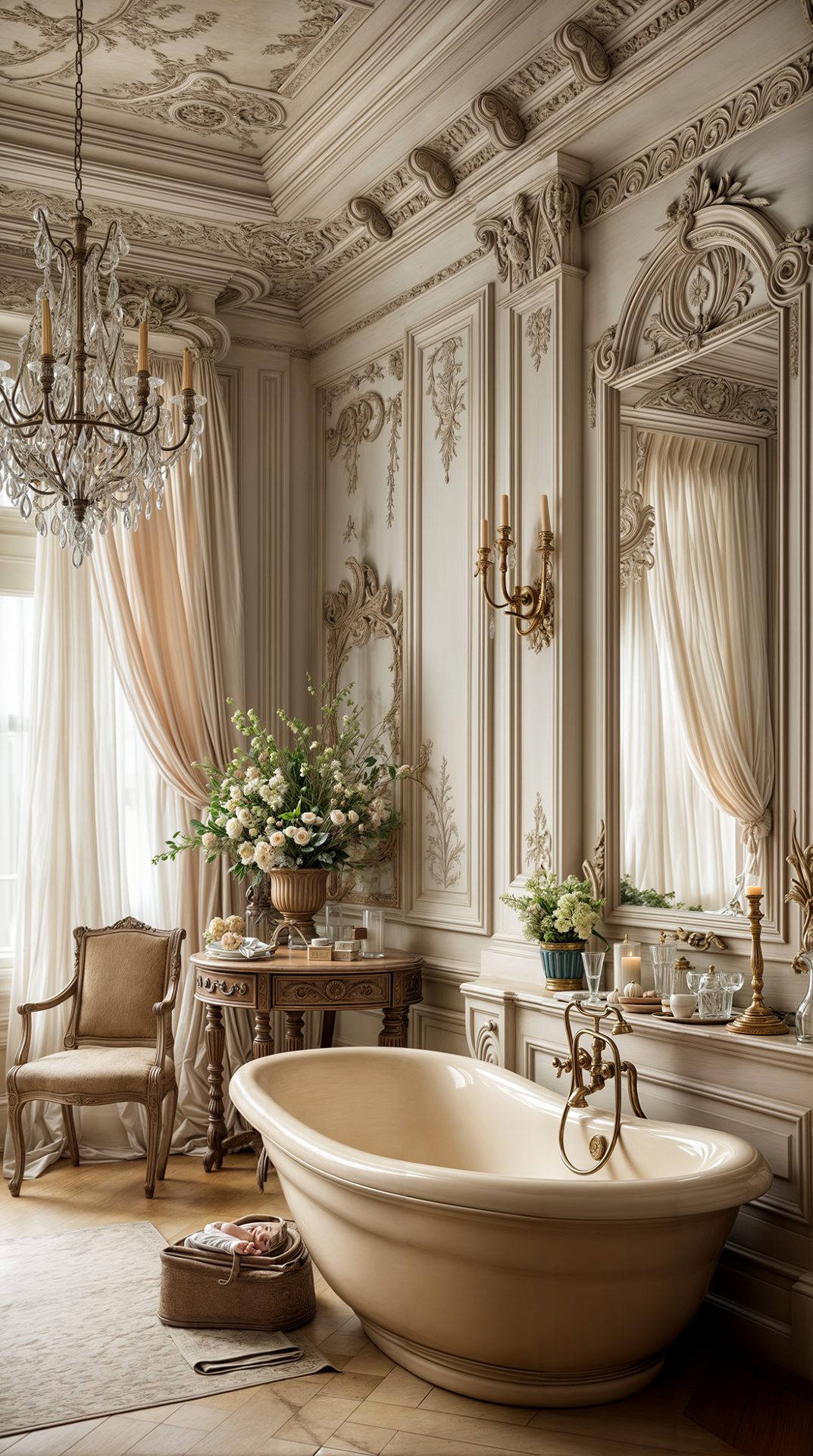 ДЕКОР: главный элемент - зеркало в позолоченной резной раме. Бронзовые подсвечники и канделябры, скульптура, шелковые ковры, картины - всего и не перечислить. Главное даже в барокко - на выходе получить таки гармонию сочетания всего этого роскошества)