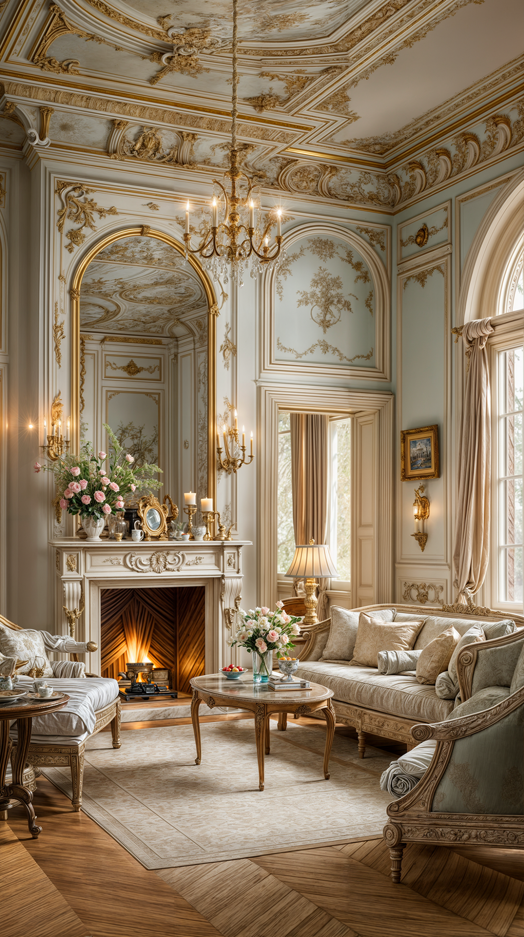 ДЕКОР: одним из главных элементов является камин с рельефным орнаментом. Так как рококо - женский стиль, приветствуется обилие статуэток, вазочек, шкатулок и зеркал. Все элементы стремятся к ажурности и изящности.